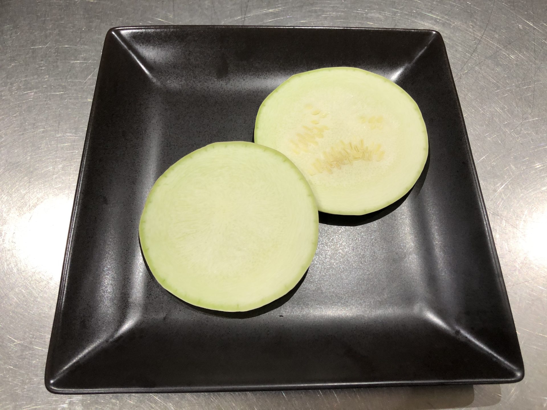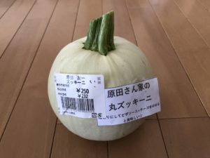 先日、白い南瓜と思ったら「丸ズッキーニ」と!